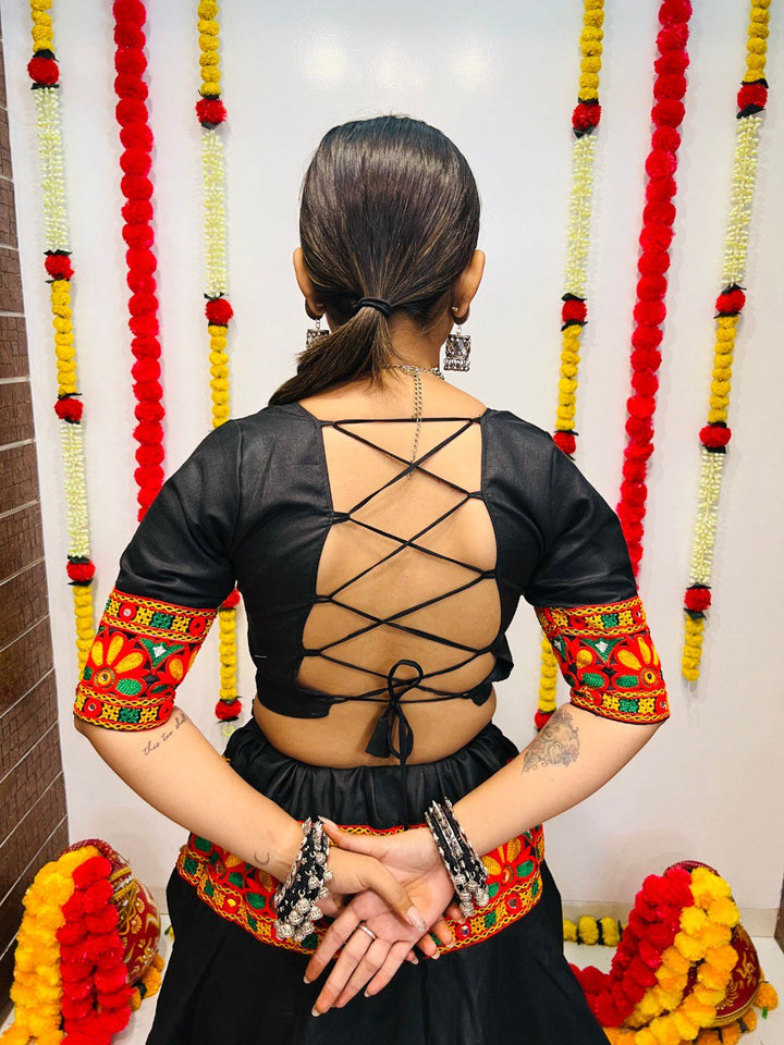 Black Cotton Silk Lehenga with Gamthi Work (7.25 Meter Flair)