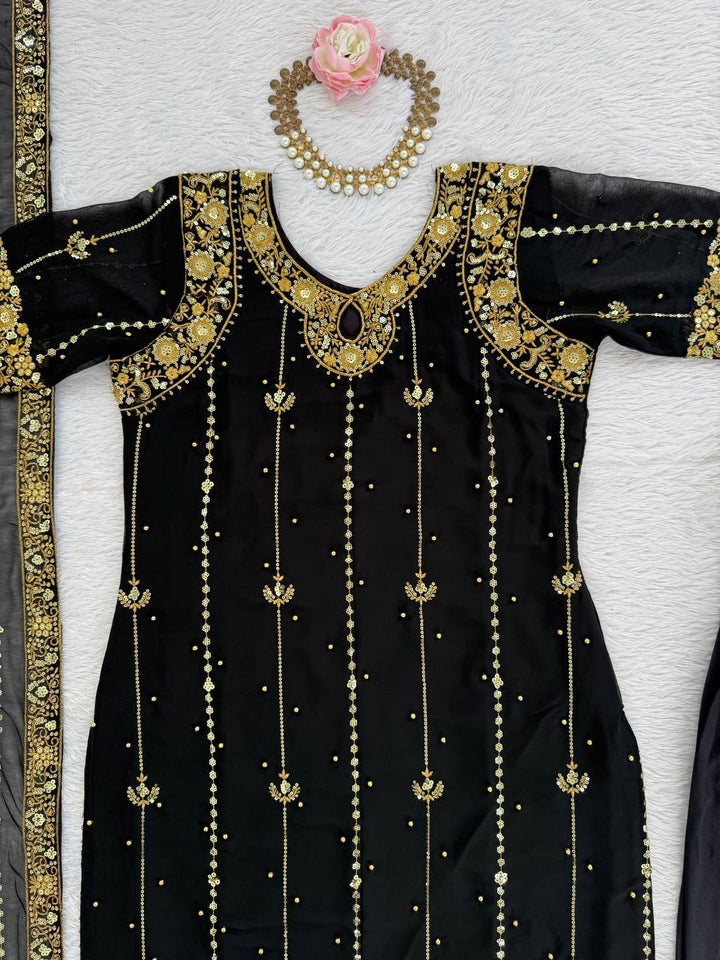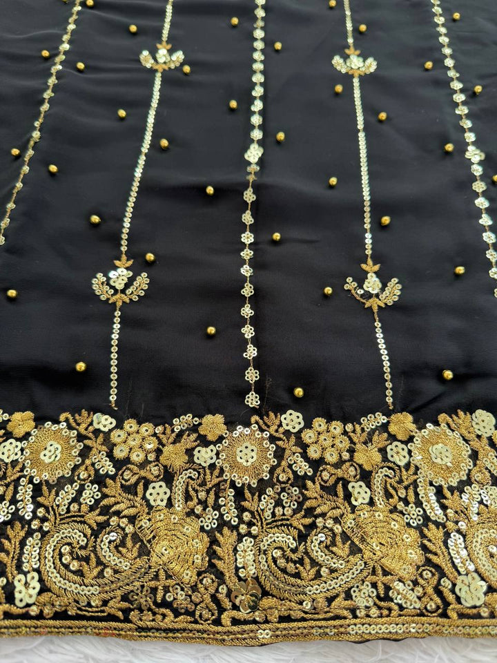 Black Faux Georgette Suit Set with Sequin & Rivet Moti Work