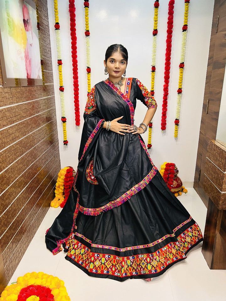 Black Pure Cotton Silk Lehenga with Gamthi Lace Work (6.5 Meter Flair)