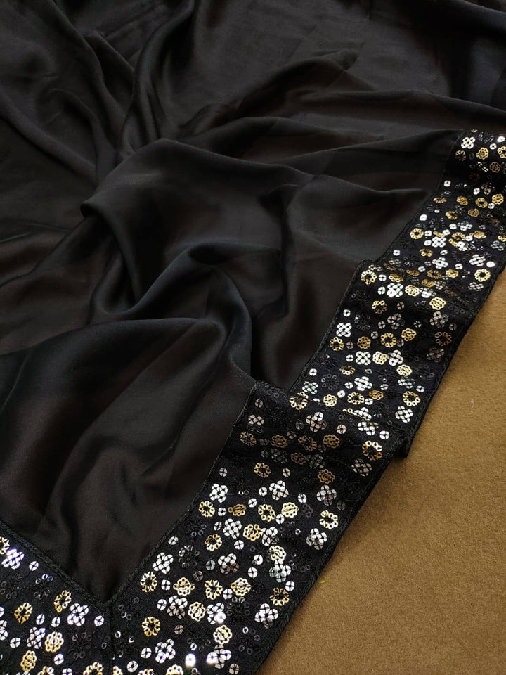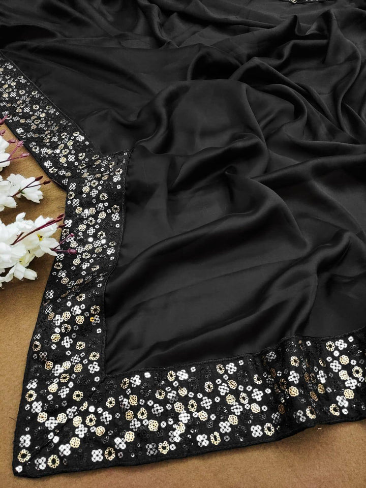 Black Soft Black Rangoli Silk Saree with Multi-Sequence Embroidery