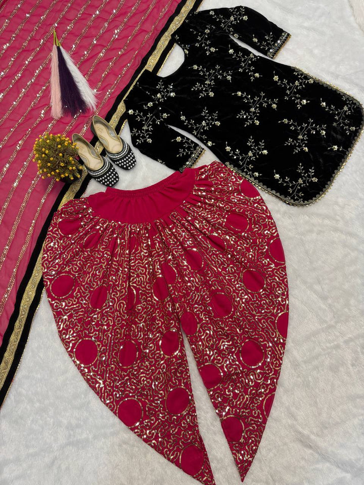 Elevate your festive and party look with the TMF-484 Premium Dhoti Suit Set, featuring rich Viscose Velvet and Faux Georgette fabrics adorned with elegant 5mm Sequin Embroidery Work. Designed for sophistication and comfort, this ready-to-wear outfit is a perfect fusion of traditional charm and modern appeal.