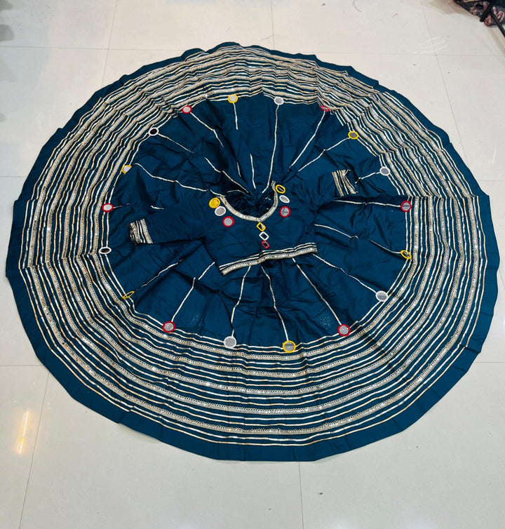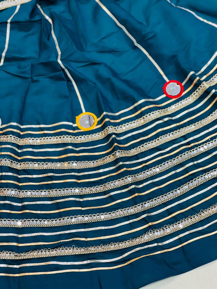 Blue Navratri Special Roman Silk Lehenga with Gota and Lace Work