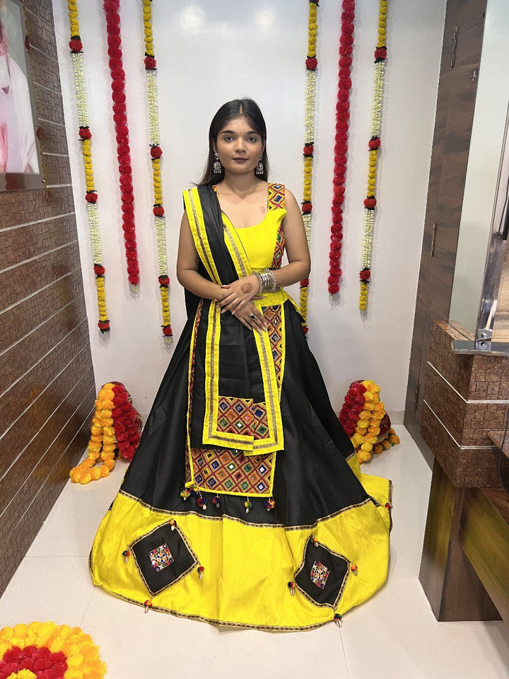 Cotton Silk Gamthi Work Lehenga Choli with Dupatta
