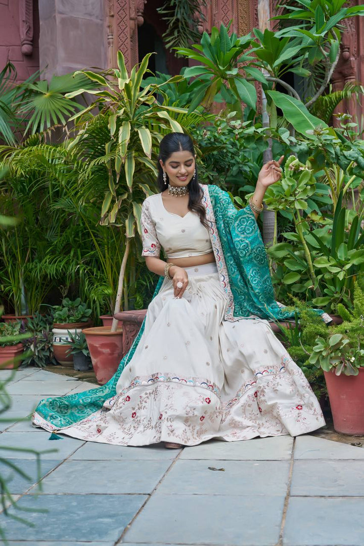Cream Pure Tissue Silk Embroidered Lehenga Set