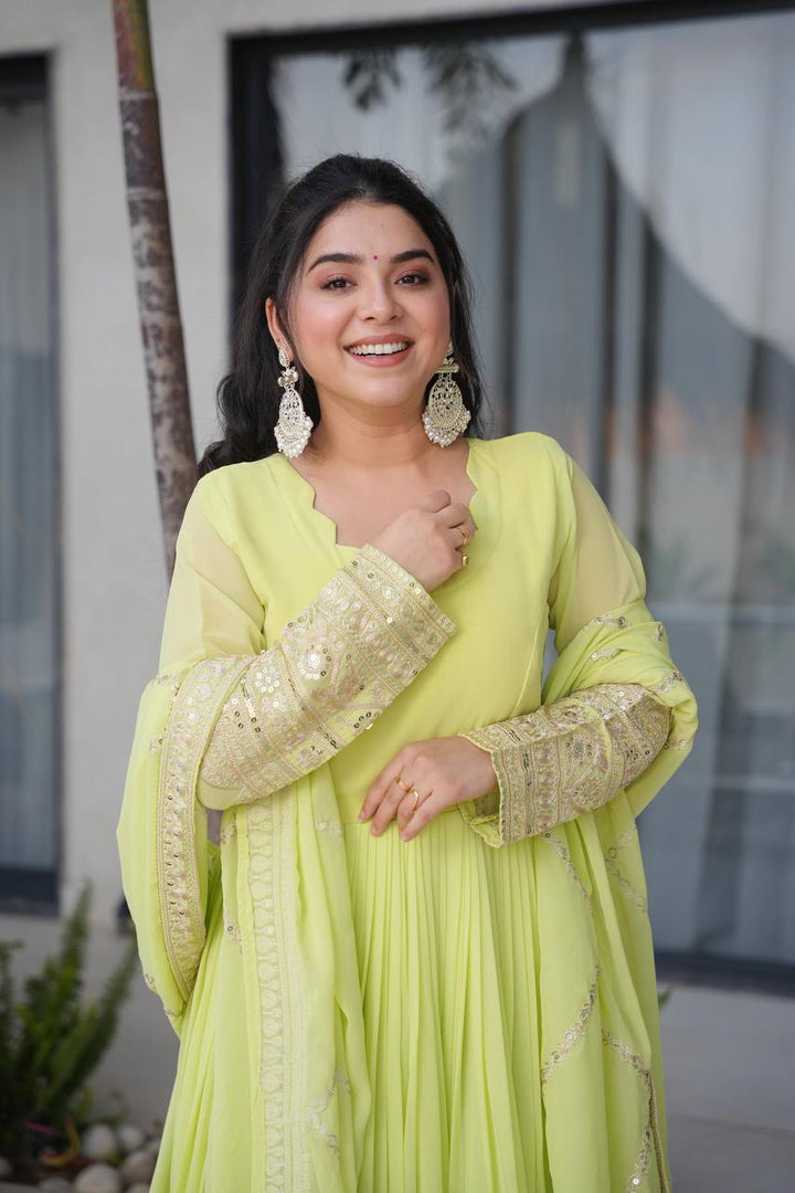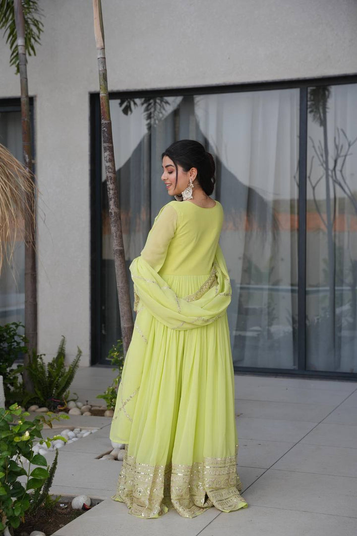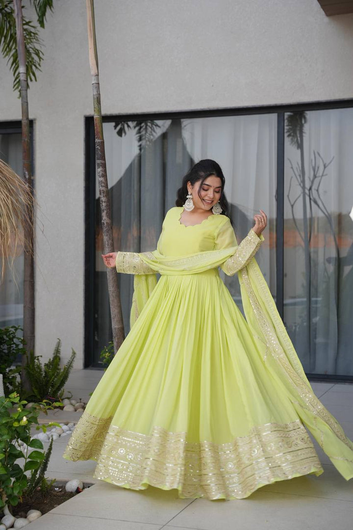 Elevate your festive and occasion wear with the Gown Set, crafted in rich faux georgette and adorned with exquisite heavy coding embroidery and sequin work. Designed with comfort and elegance in mind, this premium outfit offers a stunning silhouette and flawless finishing.