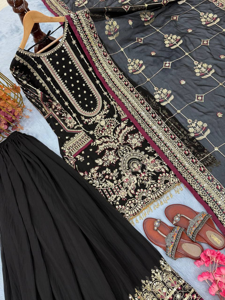Heavy Faux Georgette Embroidered Kurti with Plazzo & Dupatta Set