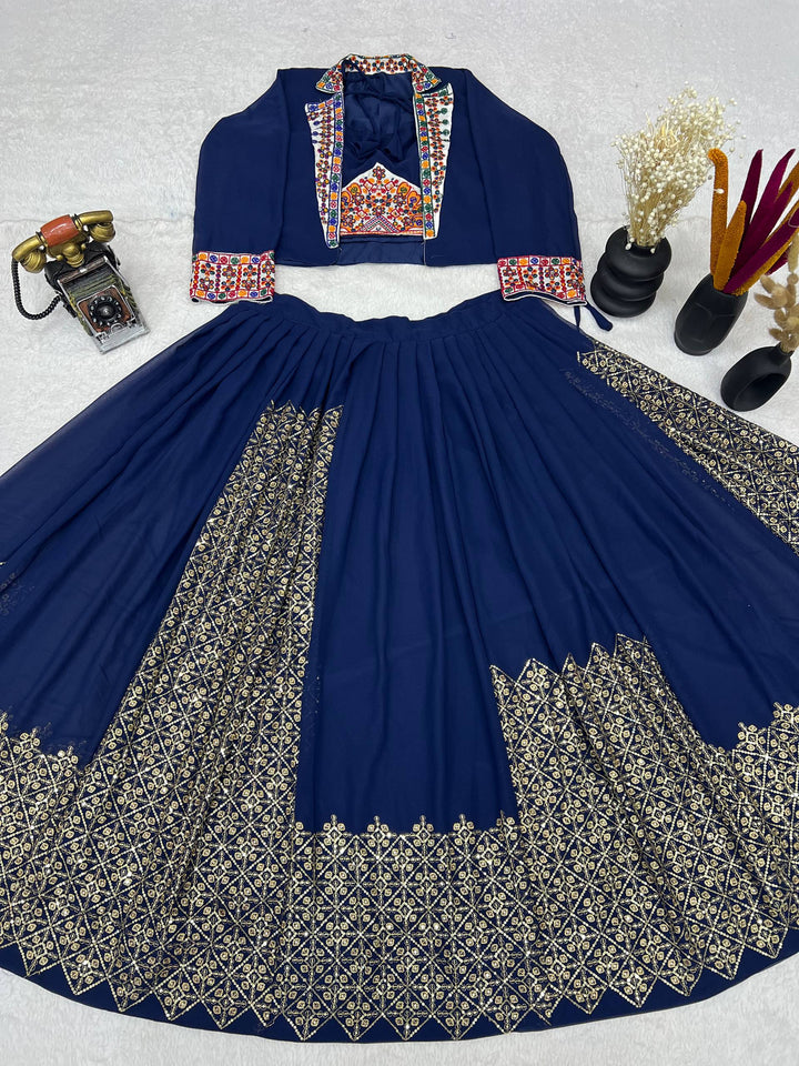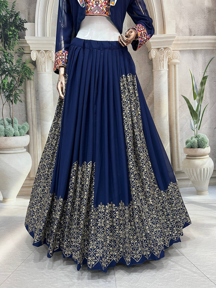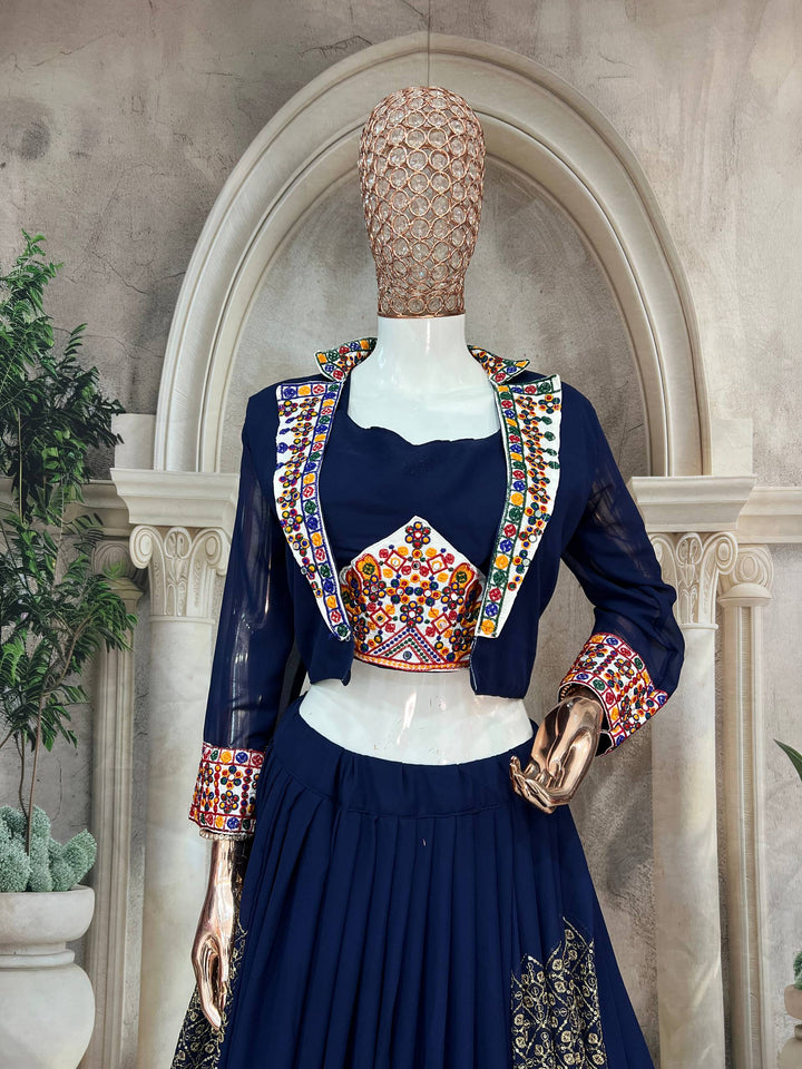 Navy Blue Faux Georgette Embroidered Lehenga Choli with Koti (Navratri Collection)
