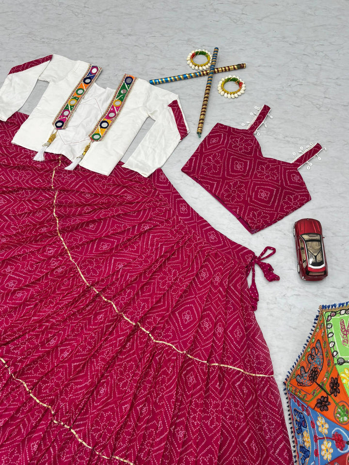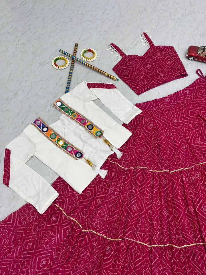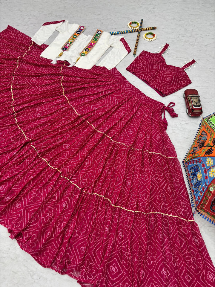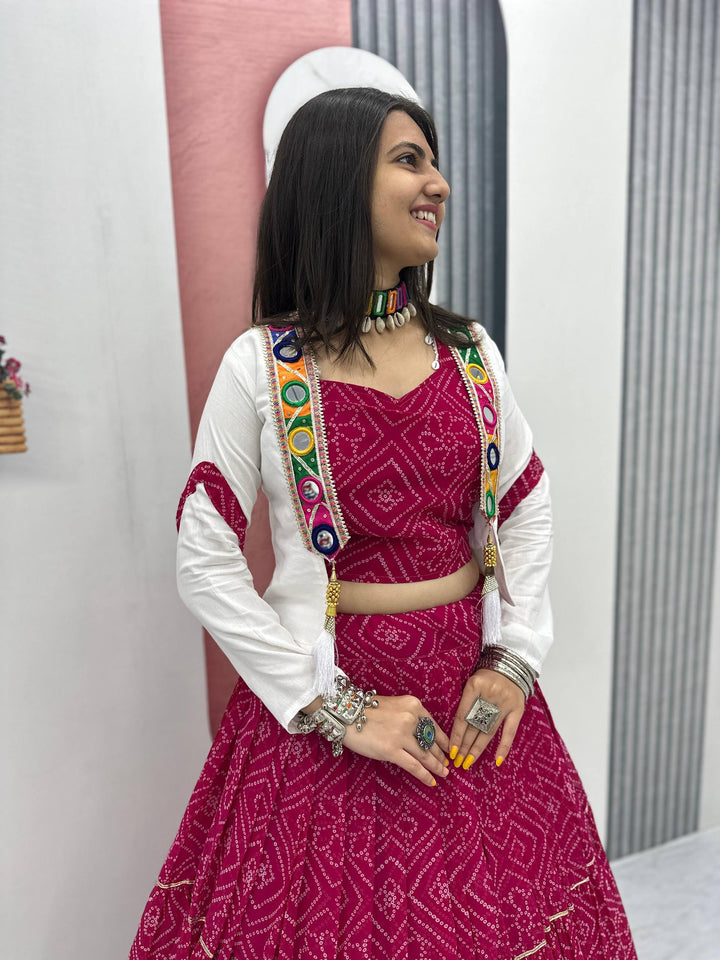 Pink Navratri Special Georgette Bandhej Lehenga Choli with Jacket