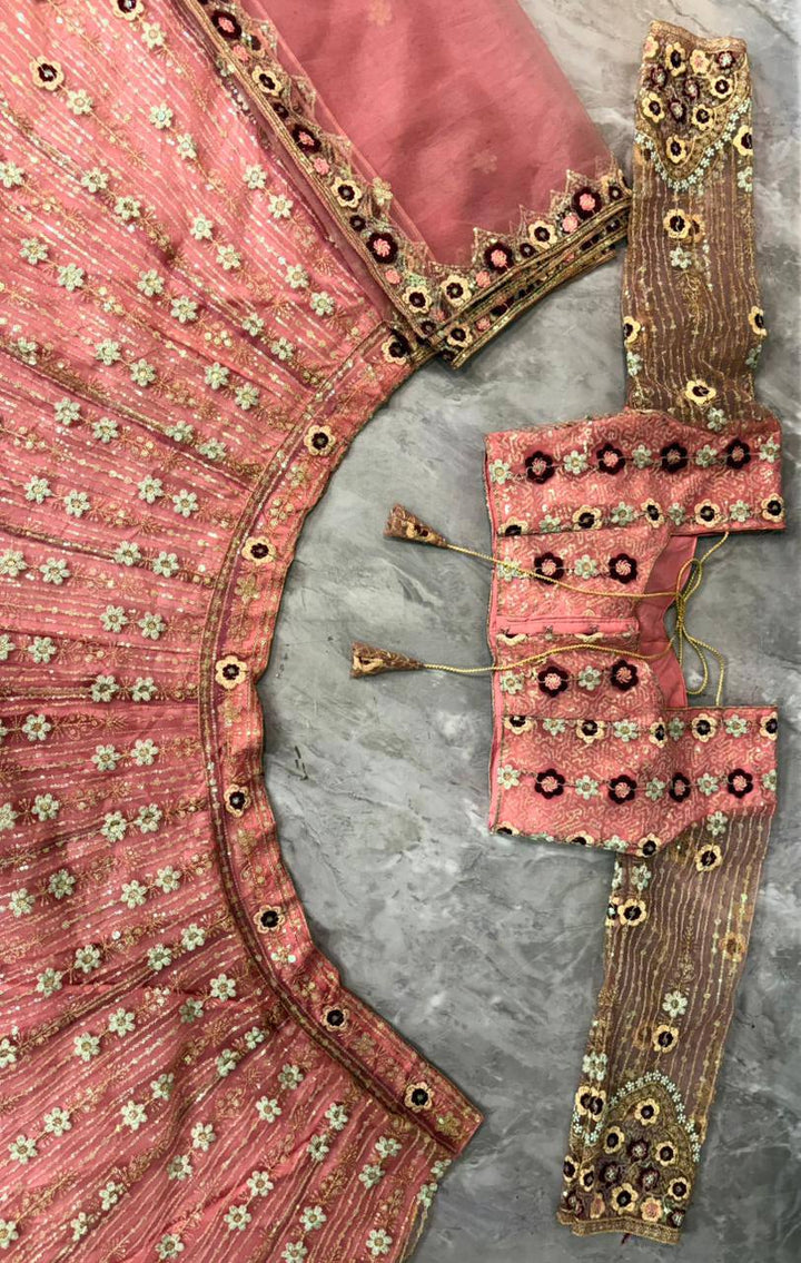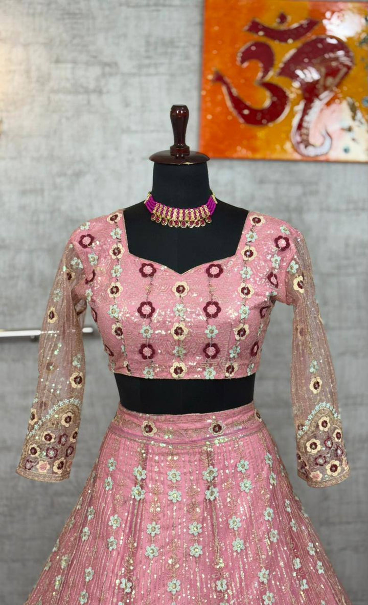 Pink Soft Net Embroidered Sequins Lehenga Choli with Dupatta