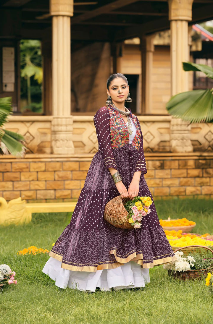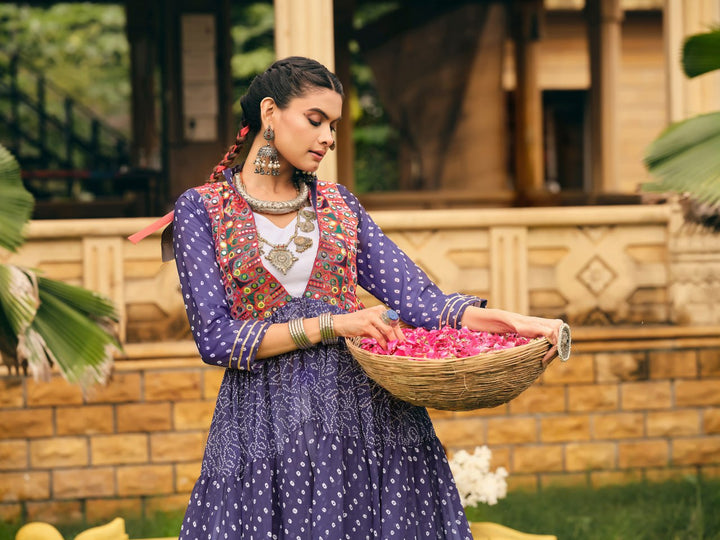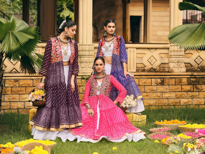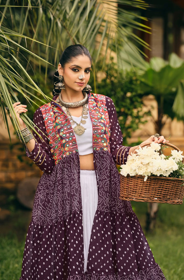 Pure cotton lehenga with embroidered faux georgette shrug and stitched blouse. Lightweight and stylish ethnic wear for festive occasions.