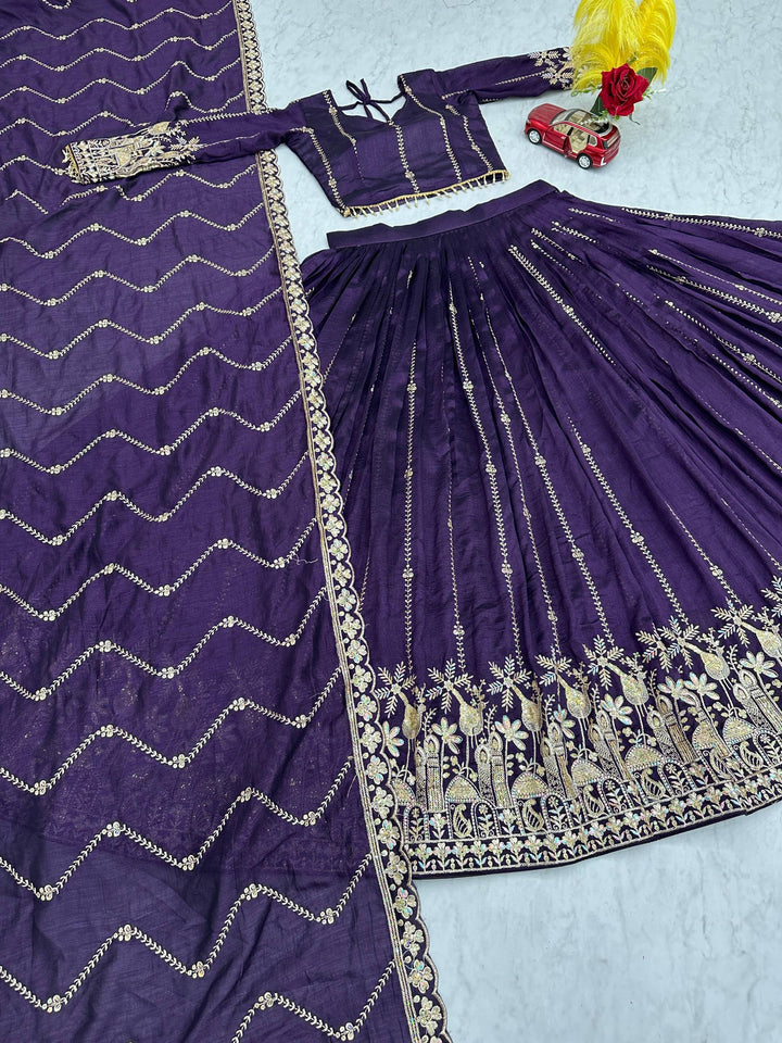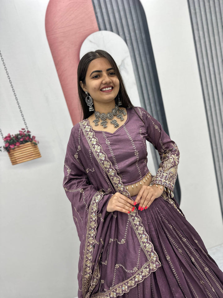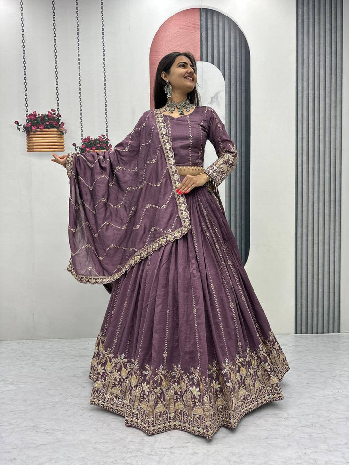 Purple & Light Purple Vichitra Silk Lehenga Choli Set