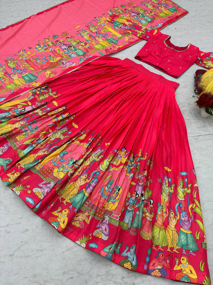 Experience the charm of traditional artistry with this Kalamkari print cotton lehenga set, crafted for both comfort and elegance.