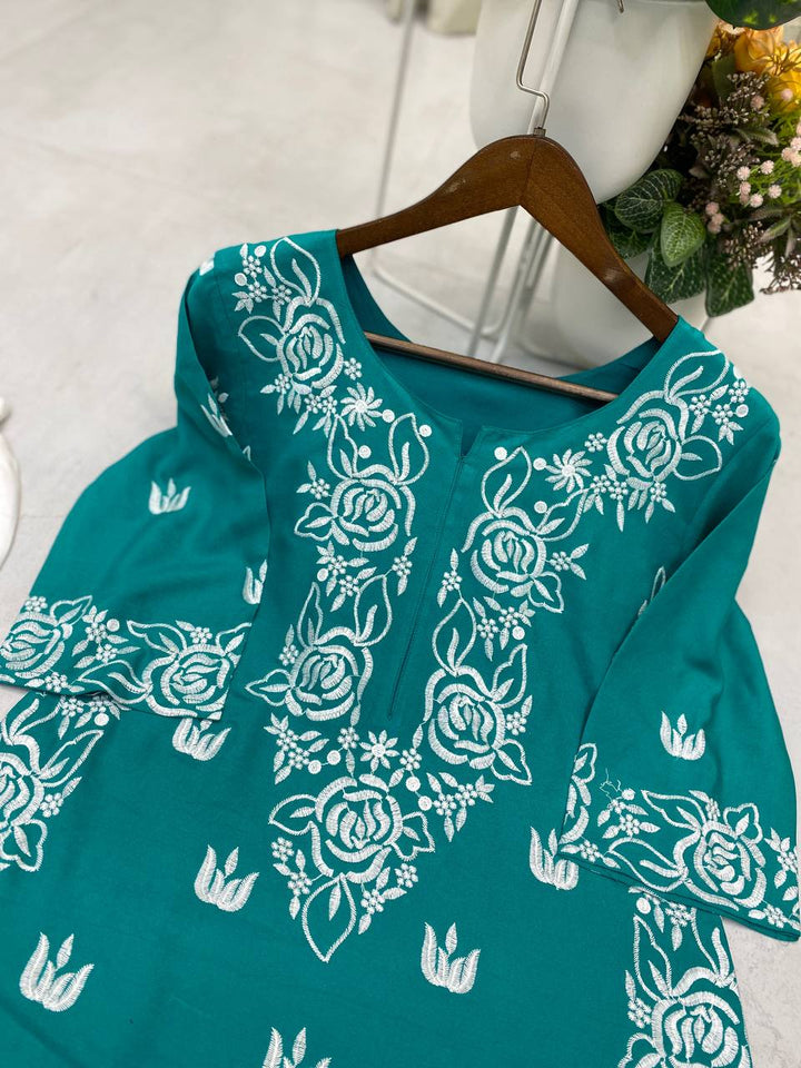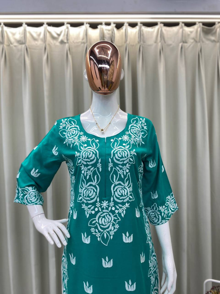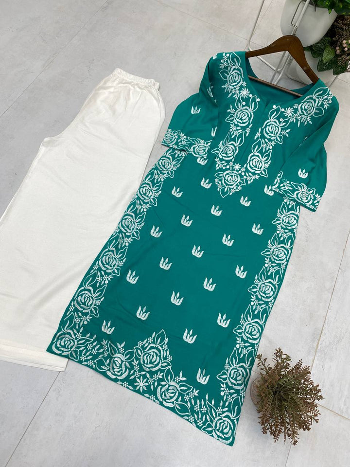 Rayon Kurti Set with Embroidered Palazzo
