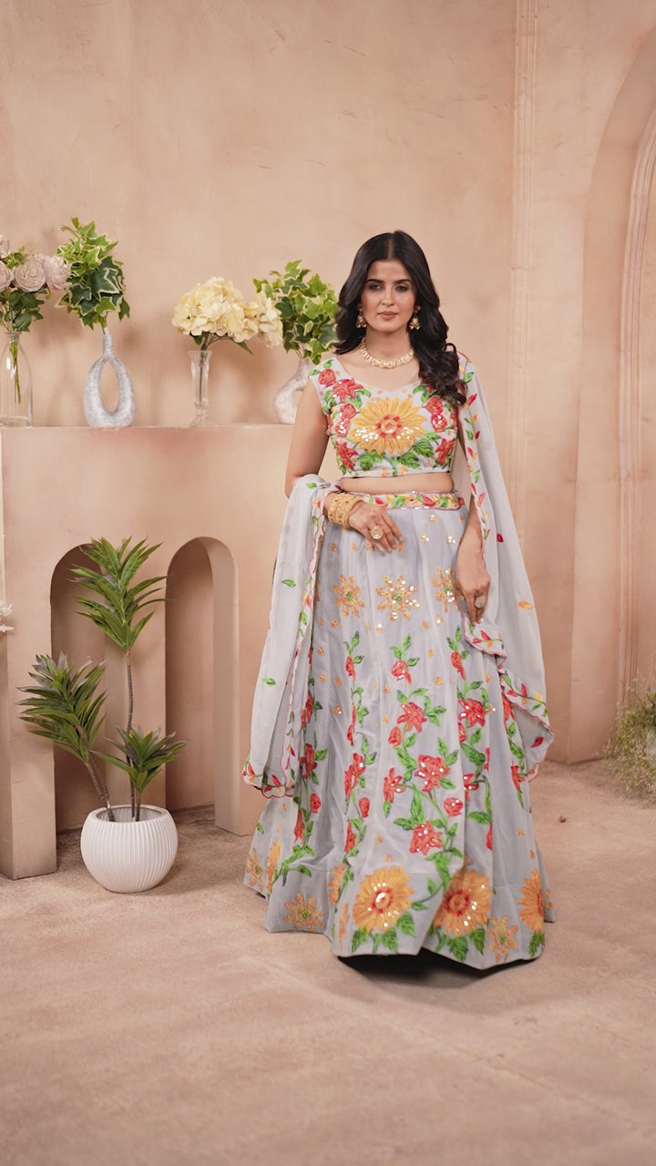 Work: Matching Sequins and Thread Embroidery Work to perfectly complement the lehenga