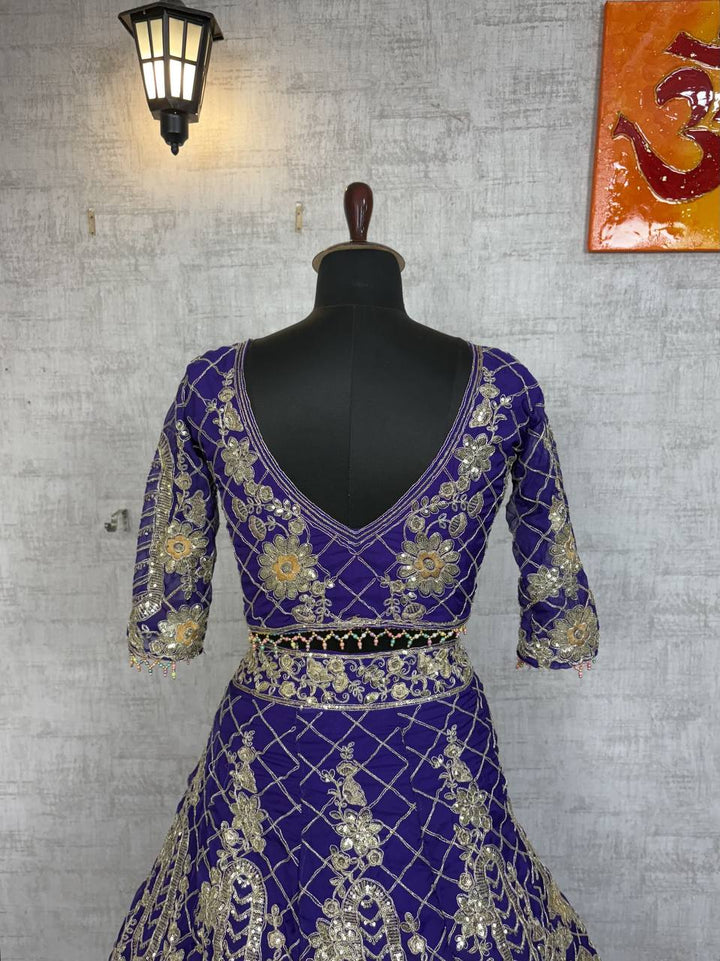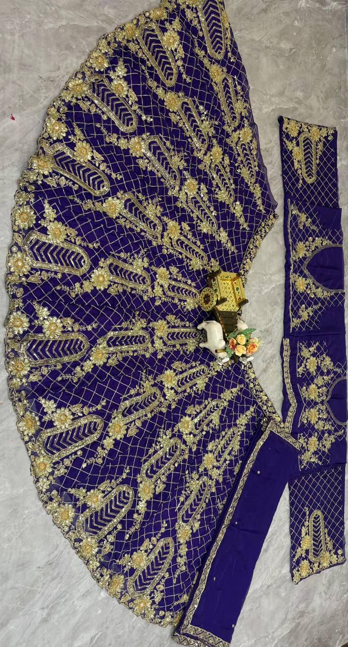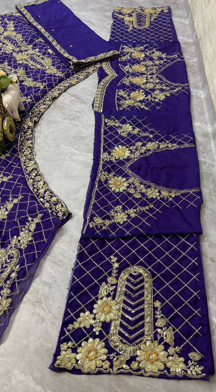 This exquisite lehenga set is crafted from premium quality soft net and decorated with elegant coding sequins work. The 4-meter flared lehenga comes with cancan and canvas patta for a voluminous drape, making it ideal for weddings, receptions, and festive occasions. It is paired with an unstitched blouse and a matching embroidered dupatta to complete the ensemble.