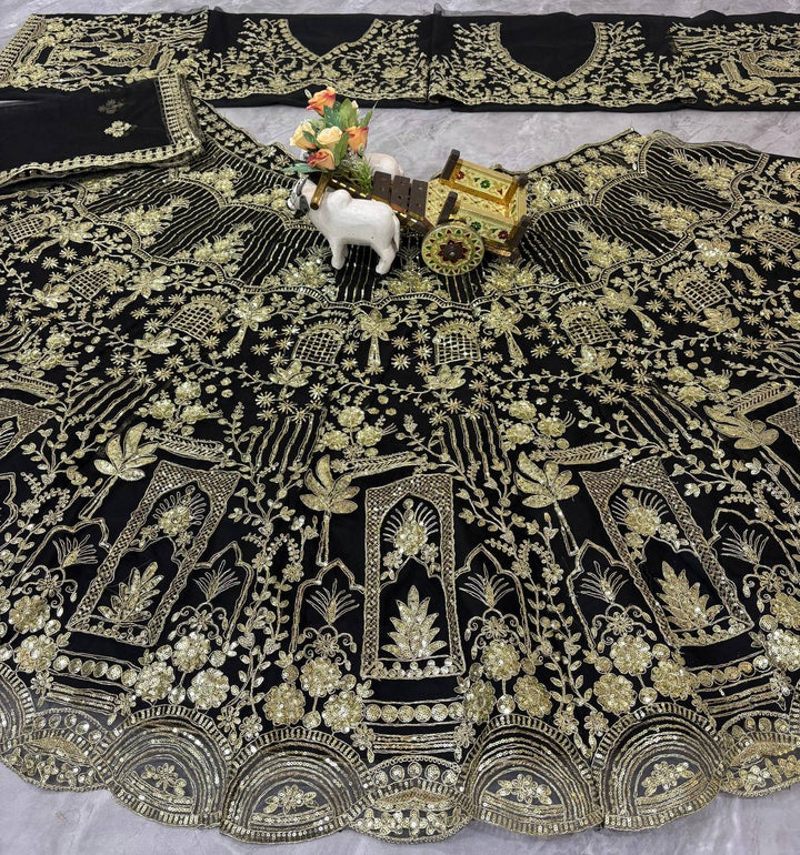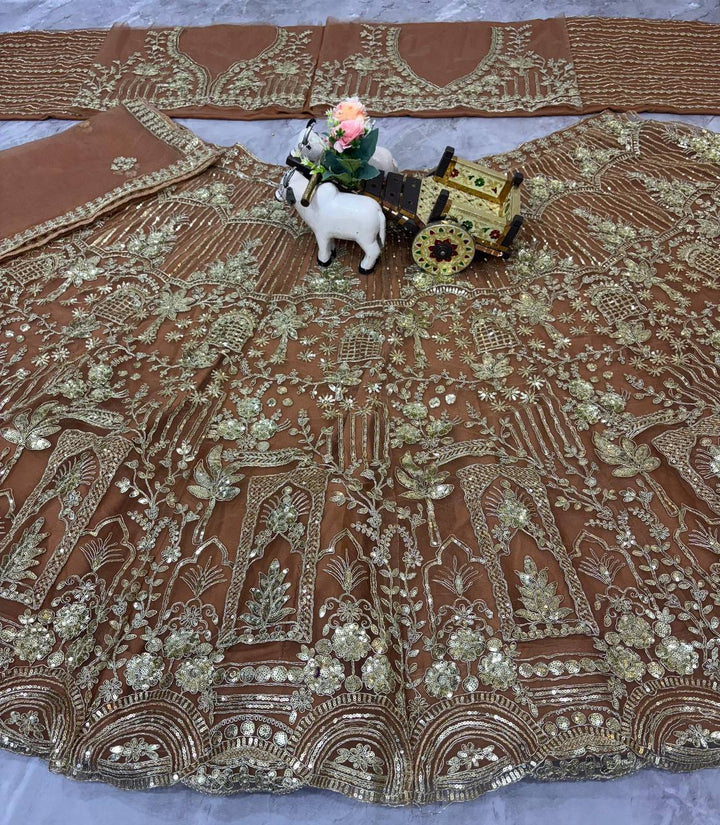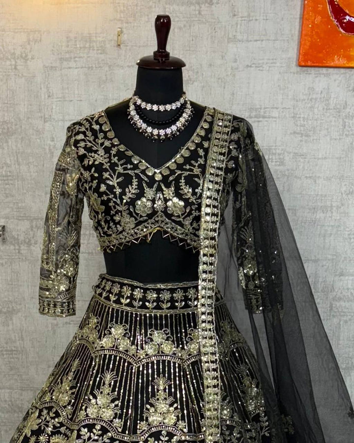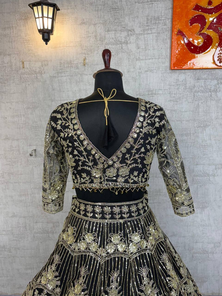 Graceful semi-stitched soft net lehenga with sequin embroidery, matching blouse, and dupatta. Perfect for weddings, parties, and festive occasions.