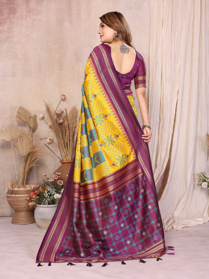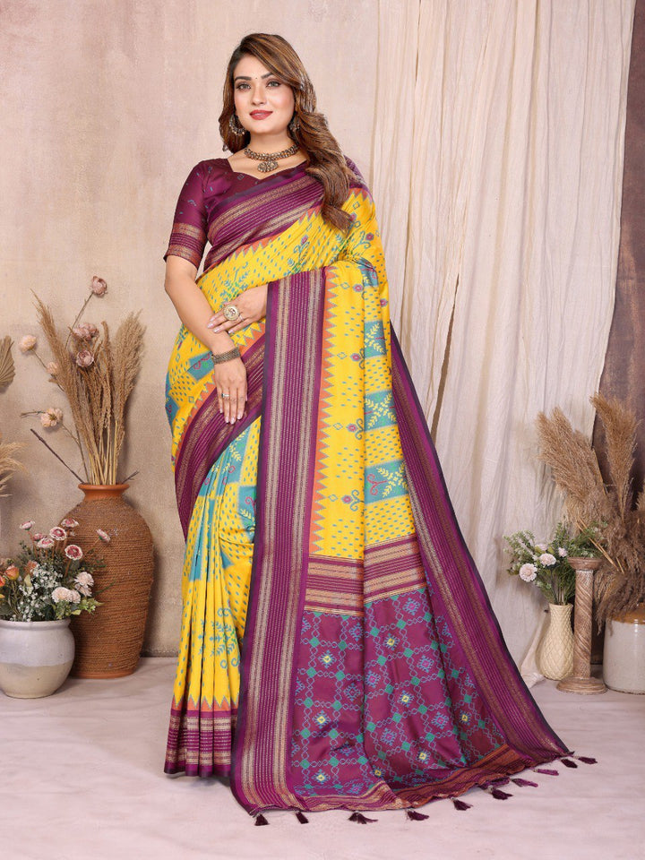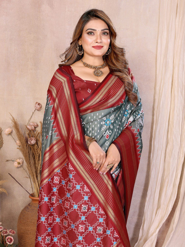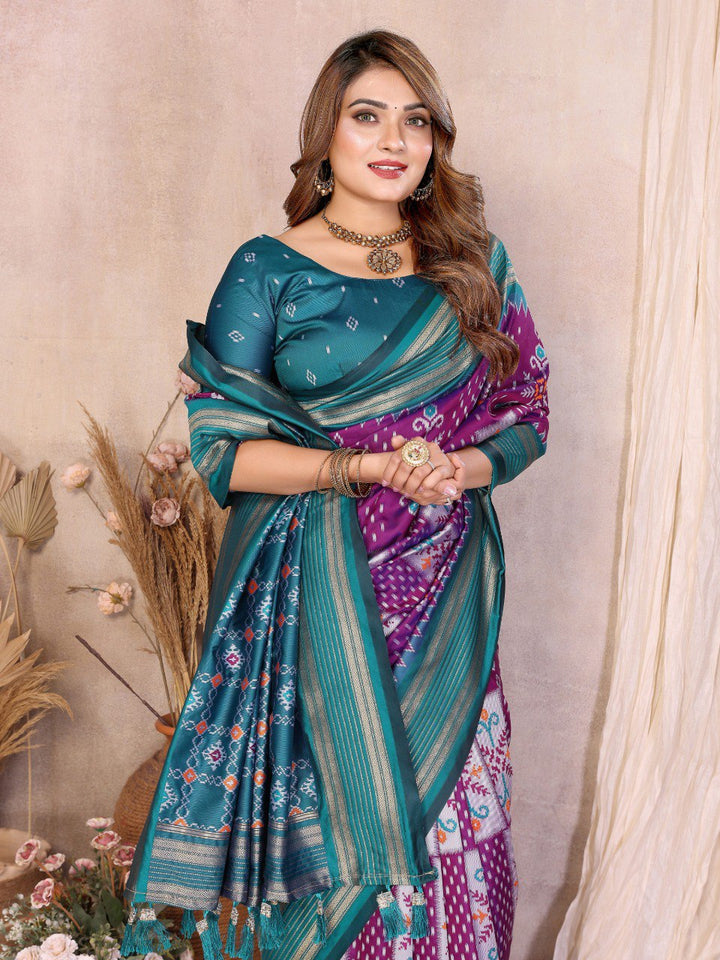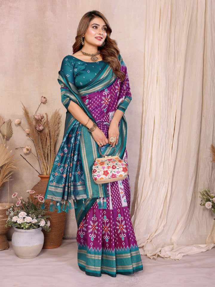 Bring a touch of royal charm to your ethnic wardrobe with the MMC-Meera Premium Soft Silk Saree. Expertly crafted with traditional Ikkat weaving, this saree combines timeless heritage with contemporary elegance. The rich zari detailing on the border and pallu enhances its luxurious appeal, making it a perfect choice for festivals, weddings, and special celebrations.
