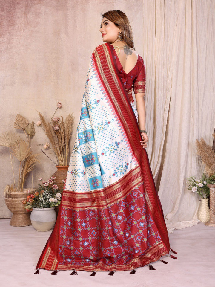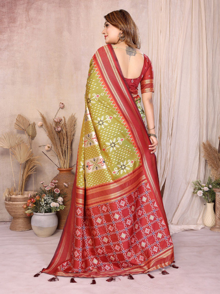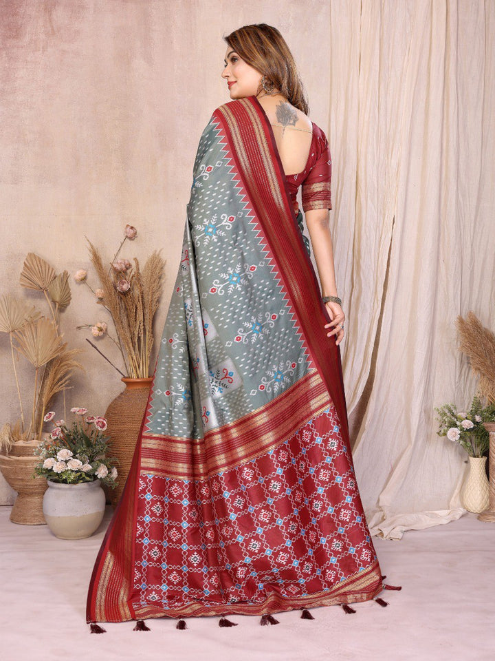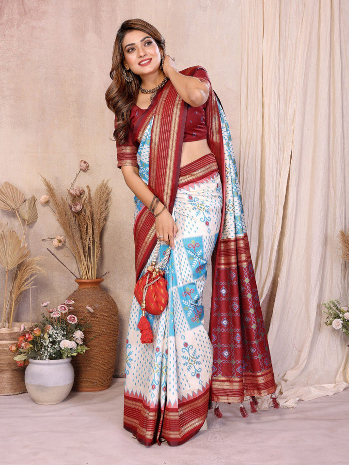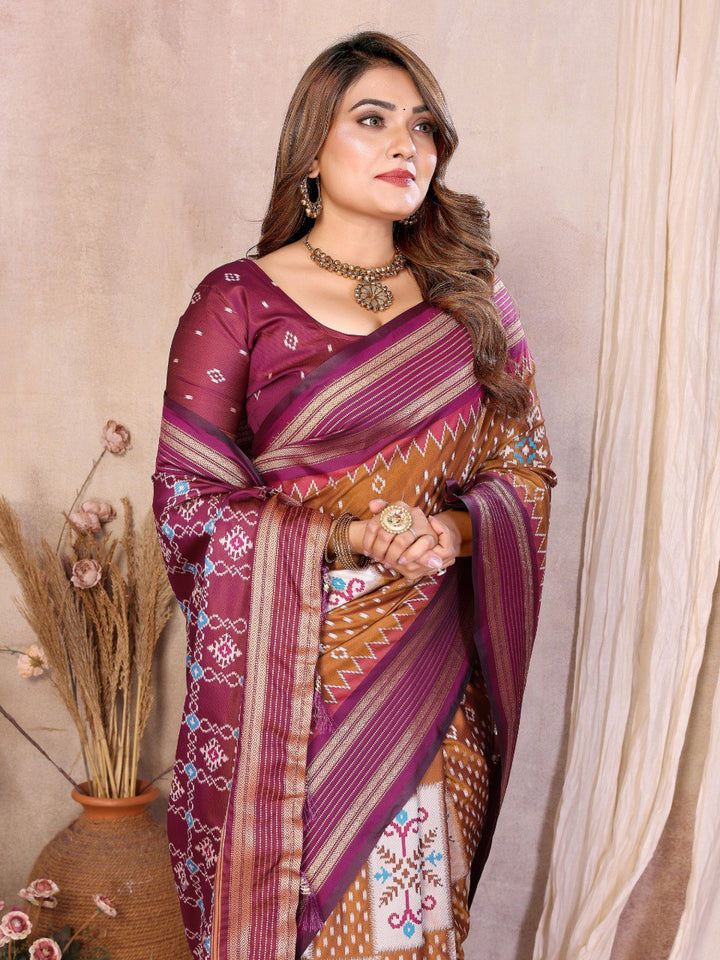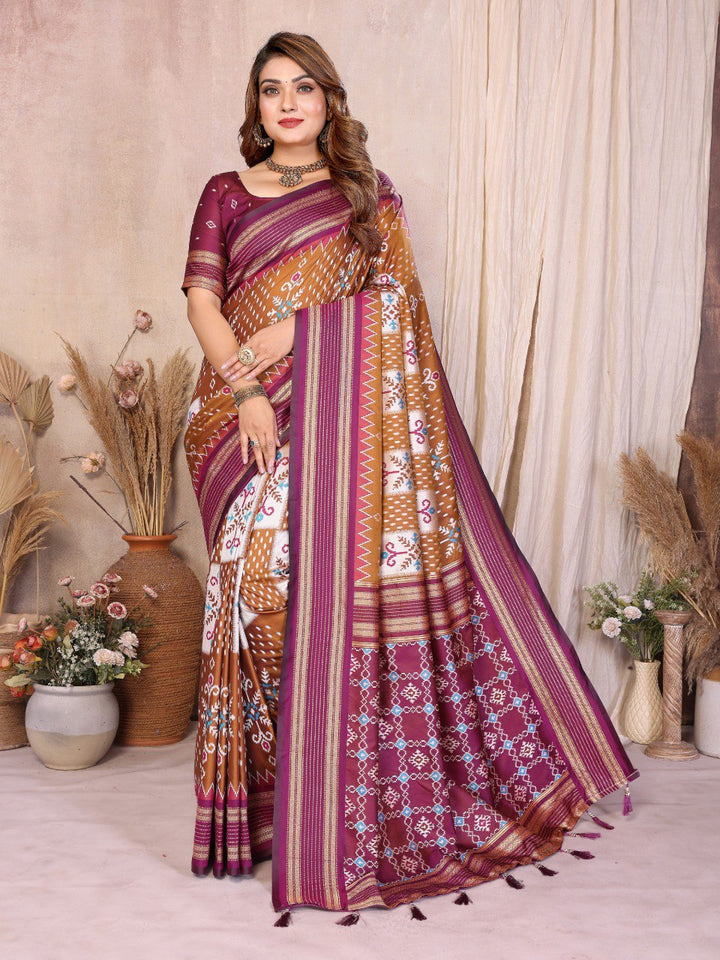 Bring a touch of royal charm to your ethnic wardrobe with the MMC-Meera Premium Soft Silk Saree. Expertly crafted with traditional Ikkat weaving, this saree combines timeless heritage with contemporary elegance. The rich zari detailing on the border and pallu enhances its luxurious appeal, making it a perfect choice for festivals, weddings, and special celebrations.