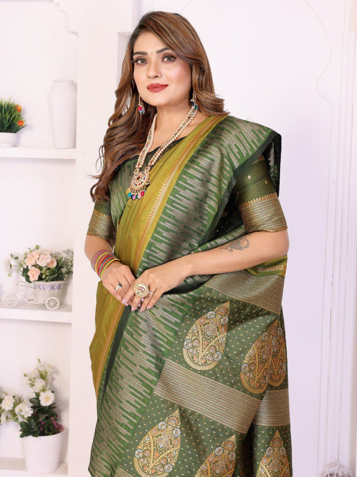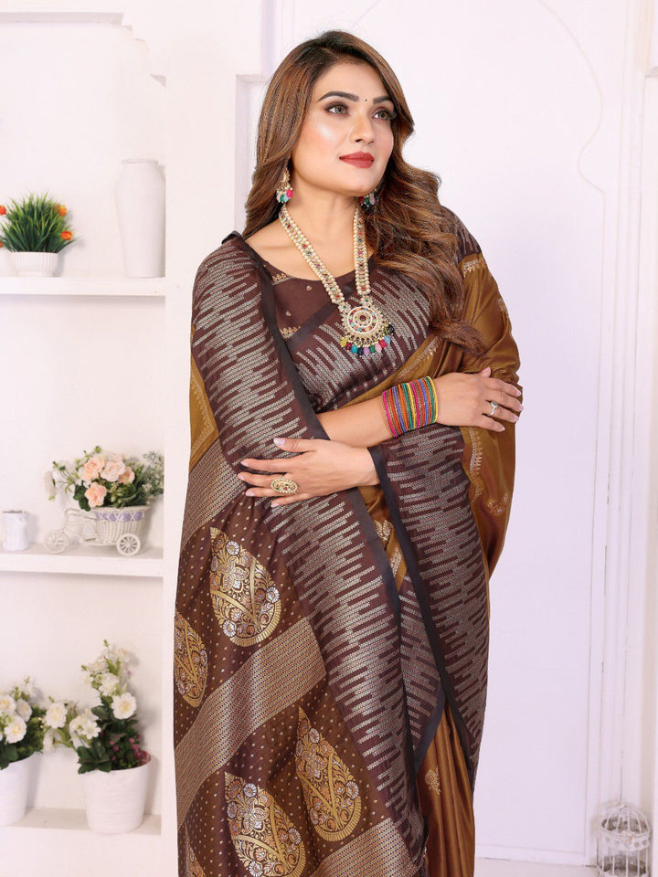 Elevate your ethnic wardrobe with the Chand Premium South Silk Saree, a perfect blend of tradition and contemporary elegance. Crafted from premium South soft silk, this saree offers a soft, smooth, and comfortable drape, making it ideal for festive occasions, weddings, and special celebrations. The saree features a stylish dual-tone look that enhances its visual appeal, complemented by a rich zari weaving border and a heavy zari weaving pallu that exudes luxury and sophistication.