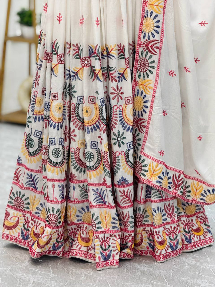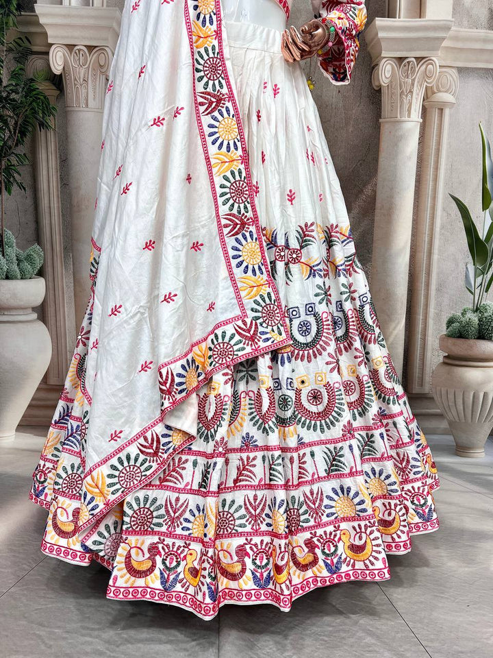 White Pure Rayon Silk Embroidered Lehenga Choli with Dupatta (Navratri Collection)